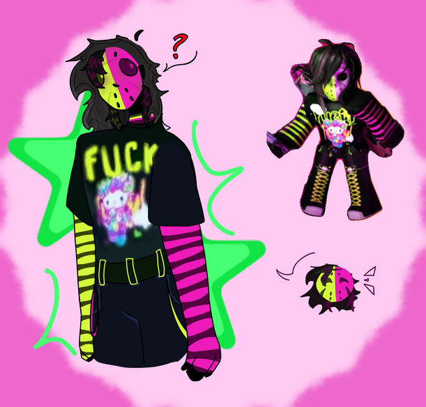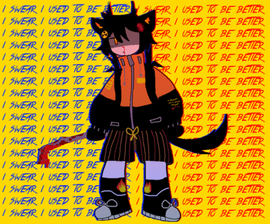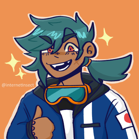 juice, an ex pirate stag beetle girl who can't stand up straight.she/they, bi/pan poly, 17