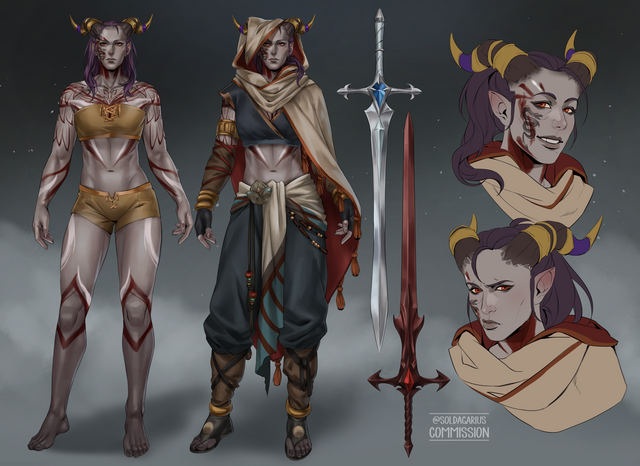 #characterdesign #originalcharacter #fantasycharacter #dnd #rpg #commission #roleplay #digitalart #warrior #characterconcept #dungeonsanddragons #horns #tiefling #whitehair