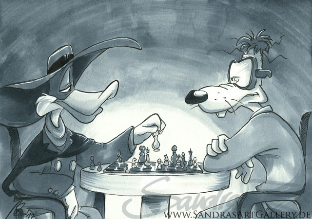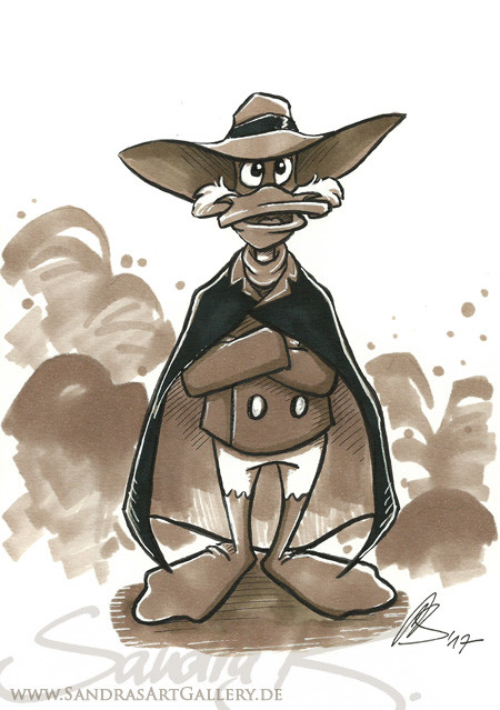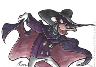 Images of a small pin that show a very early version of the Darkwing-concept circulate on the Internet. At that time the show was still to be called Double-0-Duck and Drake was supposed to look like a disneyfied version of the Scarlet Pumpernickel with a bit of a James Bond-attitude and Donald's face, I reckon.Graphite pencil and Photoshop / 2009