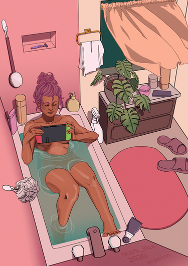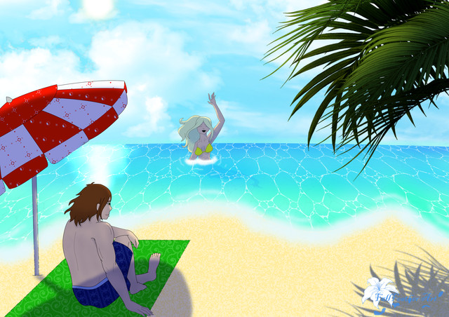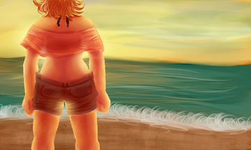 HEY MORE DIGITAL PAINTING BC I LOVE IT, I'd do anything to live on a beach and I'd like to thank Uncharted 4 and the occasional 8 hour beach ambience video for keeping me going until I can move out of a desert state :'''''')I'm quickly finding out that where you have a certain art style for drawing people, you also have one for environments as well. I'm still trying to narrow that down, and to figure out how I want to integrate figures into them believably. Originally Cassie's inks were darker, but I lightened them up due to the lack of lines on the background, to make her look less like a sticker slapped on and more like someone actually in the painting, if that makes sense? I guess I'm just trying to get digital painting down to something I can do quickly-- I think that doing speedpaints would be fun! This ended up taking me like three hours to complete so ah, not exactly a speed painting, BUT I'll get there. So until then here's Cassie walking on the beach. dont look to closely at that palm tree I bs'd the whole thing