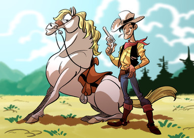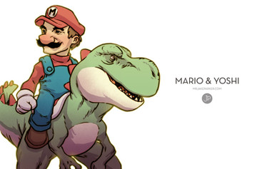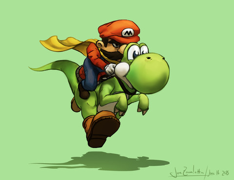 Yup, it's nothing more but Cowboy Mario riding T-rex Yoshi.Related content