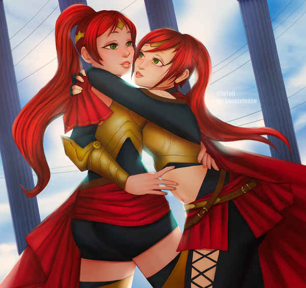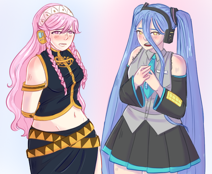 A lil lineless practice with my favorite fanalis girls, Morgiana and Razol! This looked so much better to me when I first made it, but now that I'm looking at it again after a week, the colors seem muddy and Razol's face looks wonky. It's a shame because the sketch was so cute!!On twitter: twitter.com/chahaky/status/111…