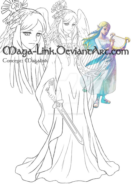 Please don't look at it if you were unable to play/finish The Legend of Zelda Skyward Sword yet. Otherwise this concept might spoil you about the story.Things I can sure mention is that my concept is most of all based on elements found in the game, of course with some little details added by my personal hand. xD Oh! And if you were able to see some manga illustrations which show another goddess concept... ignore them I tell you. They are completely pointless to me and are as fictional as my own Zelda theory. Only the creators of Zelda know the truth about the whole story. Over and out. B-I