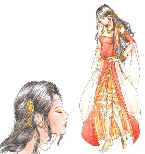 indeed the drees looks great. all of it. i also love the eyes and the lips and the background too. really nice work ^^