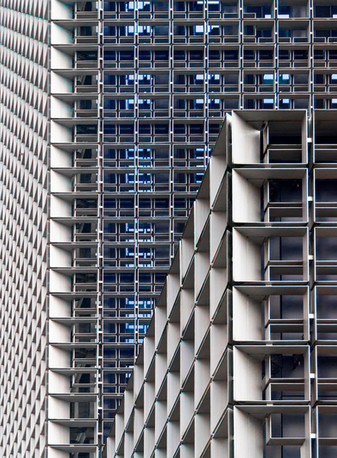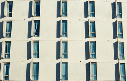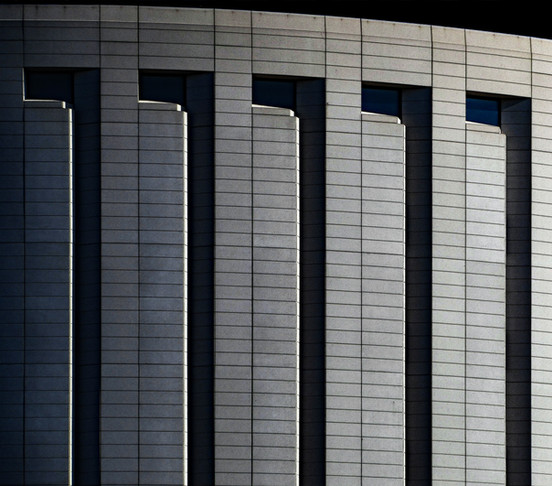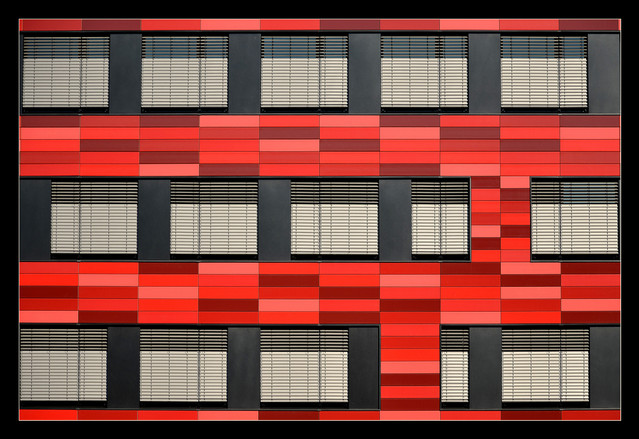 the play between the reflective windows and the blank brick and then the shadowy balcony works very nicely!