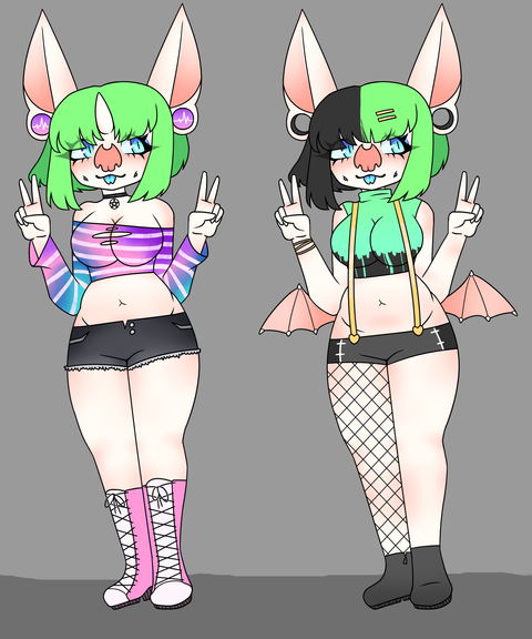 I made two colorations, the one on the left being based off the palette she provided for me, and the one on the right being a slightly darker, more contrasted version. She wanted a curvy, busty batsona with teal fluff n' hair, pink eyes, and a black body. I think she turned out really well, though I'm still worried that because the clothing and markings are really simple that I didn't put in enough effort, even if it is just a gift. oahiwhagg-