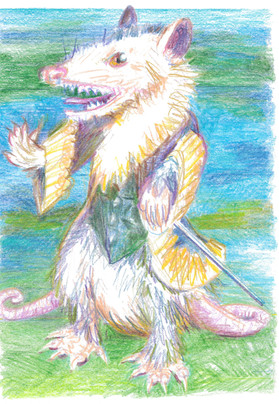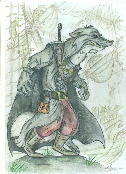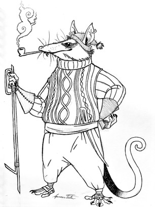 A slow witted creature, but one of the few villains in Redwall ever to turn good, though he really wan't all that bad to begin with. Blaggut is in the book the "The Bellmaker"It seems I've been drawing a lot of rodents lately