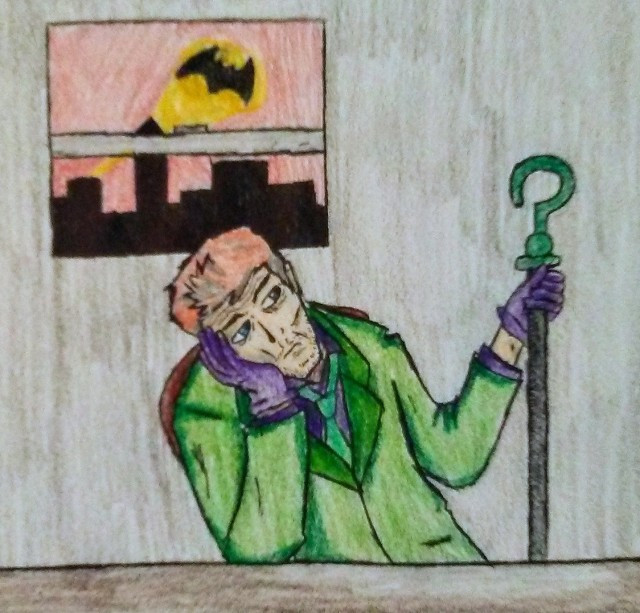 An older Riddler pic that I colored yesterday cuz I was hot and bored. I don't like how the background turned out but I thought Eddie just look too cute in this pic to not put it up. I miss drawing the RiddlerRelated content