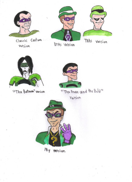 I dunno...I kind of like the one in the middle left, too. All of Riddler's expressions are great. You really know how to capture them. The colors you chose look almost exactly like the ones they used in the Animated Series, too. Very cool.