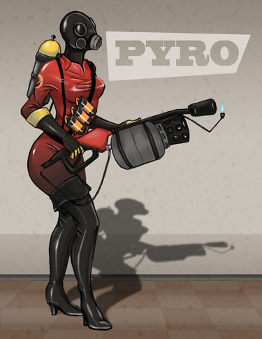 One of my favorite games is Team Fortress 2. One of my main multiplayer games. So, i had to draw the fanmade FemPyro.-----