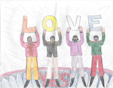 Beatles made with colored pencils and some markers. Background with watercolors.
