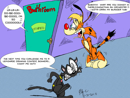 Nope. I see the "Bubsy" in the green "!" shirt as "Bobsy". A cowardly yet cautious cat.