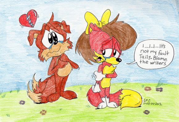 Tails after cutting Knux's dreds while he was sleeping: Ohhhh Knuxie Botnik's baddies are here