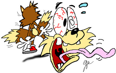 This took me a really long time to do, cause... when I was inking it before, the image keeps dissapearing. It really made me furious. So I decided to re ink the whole thing again. How do you guys keep the "canvas" on Adobe Illustrator from messing up?Any way... This is my first "take" drawing inked in Illustrator. And once again, it's of Tails. I hope I've gotten his SA (Sonic Adventure) colors right. IMO, I think Tails is the best Sonic character to pull off cartoon wild takes.