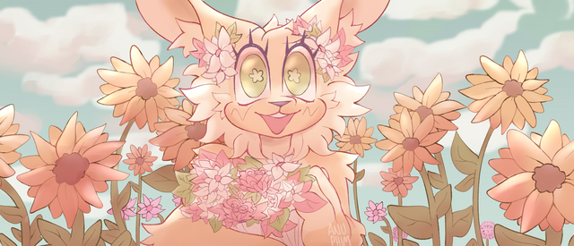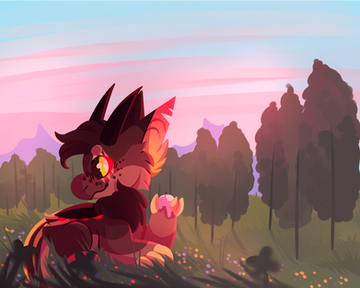 #artfight #brown #bushes #clouds #digitalart #flowers #grass #hills #lighting #orange #owly #pinetrees #pink #plants #red #shading #sunlight #fullyshaded #art #artfightattack #digitalillustration #artfightwerewolves #artfightteamwerewolves