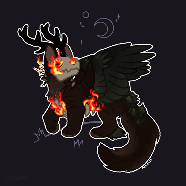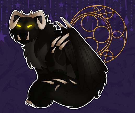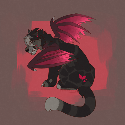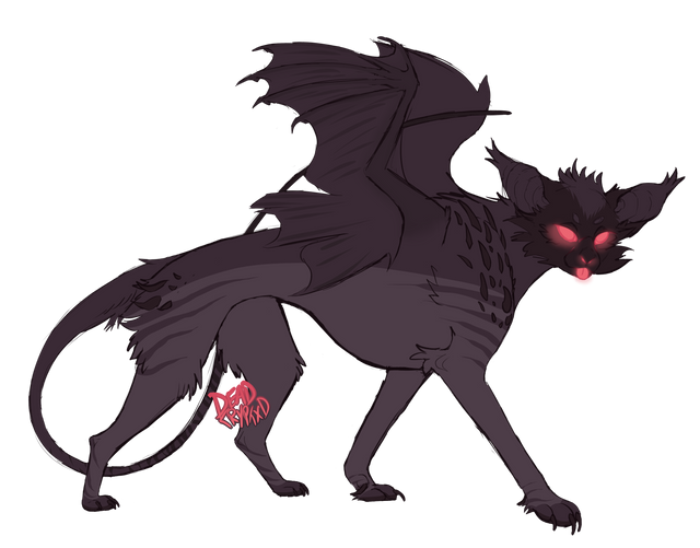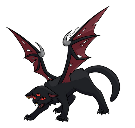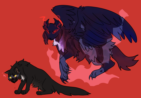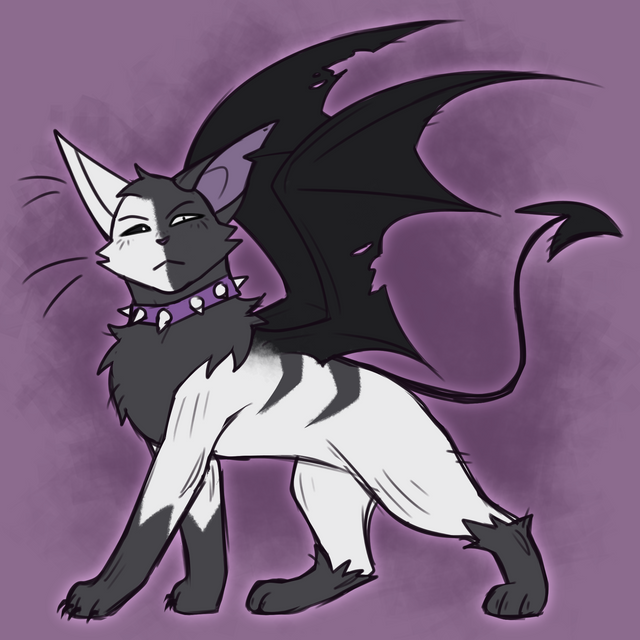 Dark is a white cat with black patches and a toughened, almost tense presence to her - shadowy claws always unsheathed. Her eyes are pure black, pierced by small, glowing "soft red" pupils. While her neck is fastened tightly by a similarly red spiked collar that seems uncomfortable to bear, yet irremovable. Leathery, bat-like wings of that same red shade adorn her back. And as a final touch to her demonic look, she bears a pair of small, black horns.Dark is cursed with..... something. Not even she seems to know what exactly she's been cursed with and can honestly be a bit uneasy with the subject.