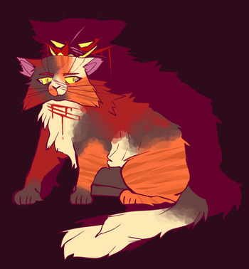 Hate's been everywhere. She's been drowned, burned, beaten, crushed, suffocated, starved, maimed, bled, you name it - Hate's been through it. And it's no wonder that after all this, Hate herself has become very abrasive. She eggs on or insults pretty much every cat interacting with her - she expects they're gonna kill her anyway. They're practically programmed to hate her after all.