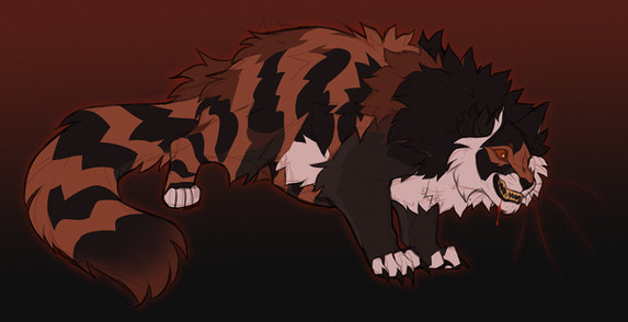 Hate is a smaller tortoiseshell and white she-cat with orange eyes. Her fur is almost always ruffled and dirtied, and her eyes seem red with lack of sleep. She always has two earrings in her left ear instead of one. One of the earrings looks older...