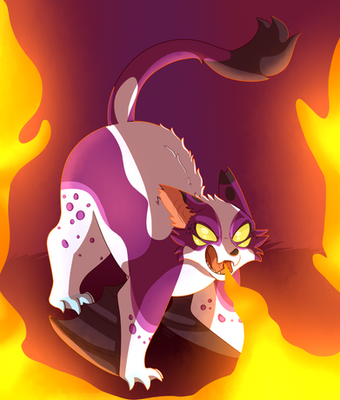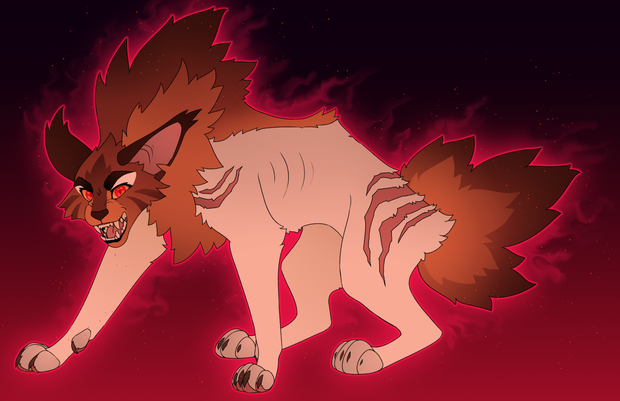 Kill was a lean light tan cat with draconic black and red wings and eyes of endless shadow. His pelt studded with shards of pure black and head crowned with two curving horns formed from these shards. Kill’s gaze was an endless, encompassing dark, in which you could easily lose yourself by looking too long. Going too deep. Endless, endless, endless.