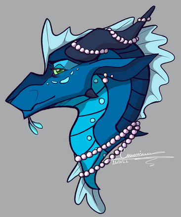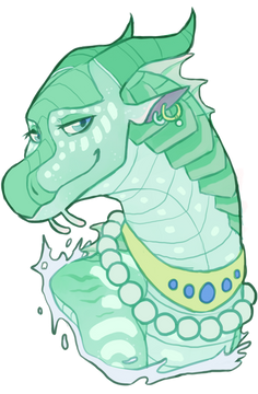 Queen Crest ended up inheriting the title of Queen when her mother, Queen Tide, unexpectedly died after complications from eating a whale bone which turned out to be a bit too sharp. Crest was pretty young with not much interest in being Queen at the age of 5, but she was Queen Tide's only daughter and she was lucky enough to be a born animus (something the SeaWing royalty hadn't had in some generations, and were more than ecstatic to finally have one again)The title of Queen may have been better given to one of Queen Tide's sister, but many SeaWings argued that they wanted an Animus to be Queen and protect them instead. Not to mention that the sister's were disagreeing over who should inherit it. So Queen Crest it was.
