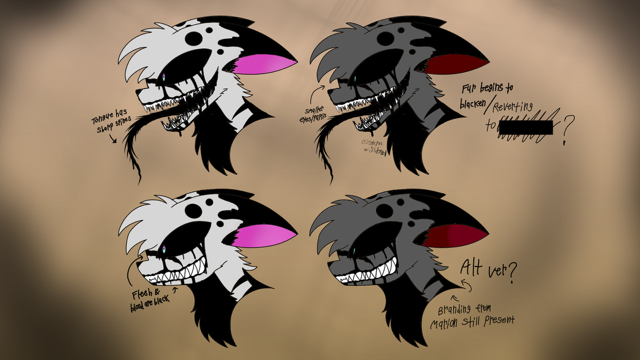 Sorry for the big lack of art, I've been very overwhelmed with some stuff going on in my life recently. I am somewhat coping by revisiting an old FNAF fan-game/story idea lol. Uhh, so, yeah. I never posted anything about it before.They are: Casey the Cat, the sheep who I haven’t named yet, Chuck the Bull, "Rabies," and Nut the Squirrel.