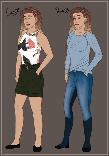 Personality: Marigold is bubbly, enthusiastic and excitable. She's outgoing and extroverted, and is always there to chat your ear off if you walk past while she's working in the gardens. She loves everything to do with plants and flowers, and will always have your back if you need a plant identified, or need a floral arrangement last minute. She's creative and clever, and paints on the weekends to earn some extra money. You can find her paintings decorating some of the offices and rooms around the equestrian centre. Marigold is an avid activist and environmentalist, and can always be found wearing locally sourced and thrifted clothes. Always seems to be wearing autumn neutrals.