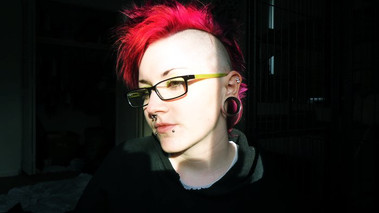 #balcony #blueeyes #brick #bricks #buzz #buzzcut #cleo #cute #eyes #flannel #lips #nerd #pink #pinkhair #portrait #pretty #punk #roommate #wall #outside