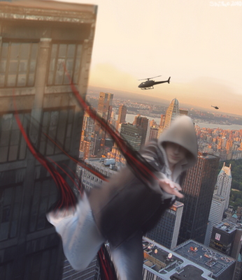 Thats an actual fotograph of my buddy Young Zer0 [link] jumping up a wall at a parking lot ^^ ...the base clothing was easy to improvise and the rest is simple photoshop magic