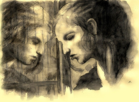 Hmm...it's very unique. The colors blend well on the face-it could have used a little bit more on the water. It's a very good painting...the random dark lines enhance the pale face, which I thought was excellent. The only thing I could think of to recommend would probably be...adding a little more to the water. I think this is lovely, though. I hope you don't mind my adding it to my favorites.
