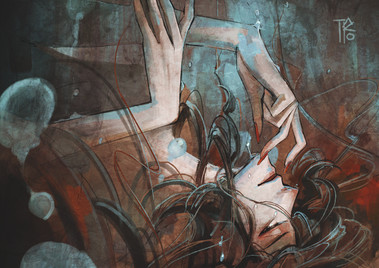 This occurs fairly oft in your works - but especially so here in this piece. I love how ethereal this feels. There's something about the closeness to the face that 'brings you in' to associate more to the character. Atop that, the floating in an almost lack of substance gives it this eerie vibe. I it. Thank you, as always, for sharing with us ^_^