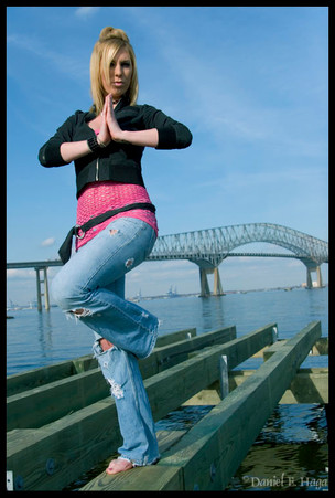 I like this photo! It's great colours, and the pose is perfect in contrast to the backgound.. But there is something about her facial expression that doesn't really fit in, I don't know why.. But overall, a great pic.