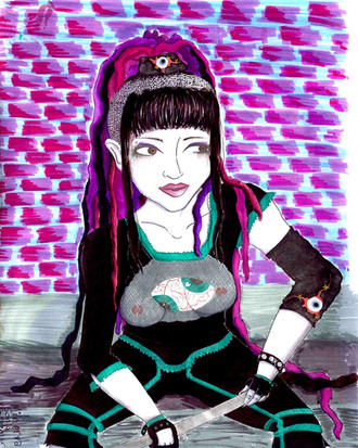 Tricksey's a cybergoth, so I don't know why I drew her away from a computer.