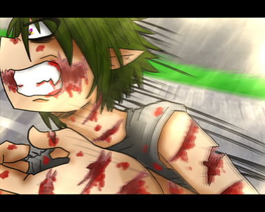 Aye, he looks quite battle-scarred there. However, I wouldn't be surprised if whoever he's fighting ends up being cut up worse than he was there. @_@
