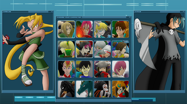 You did a nice job detailing the little character select icons. I like how you highlighted the borders on th currently selected characters. Good eye for detail! ^^ I really like the cool background and color job.