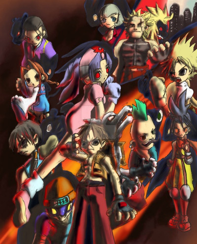 FINALLY, it's done!! Completed! After... 5... days!! *collapse* The character select screen of a fighting game that will never exist. Why? Because it's cool... *sparkly glassy eyes of HOPE!* SO FULL VIEW!! PLEASE!!! It's only an extra click...But anyways, from top left to bottom right, the characters in here are as follows: