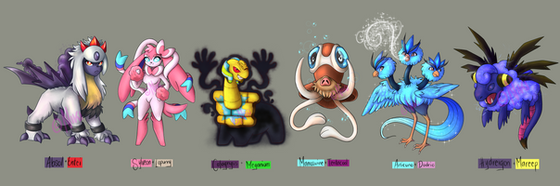 This is great!Β The Piloswine one is my favorite because it's definitely something that could be a Pokemon, but it could also be an original monster.Β I'd love to see a cave tribe of them in a movie or something, ehe.