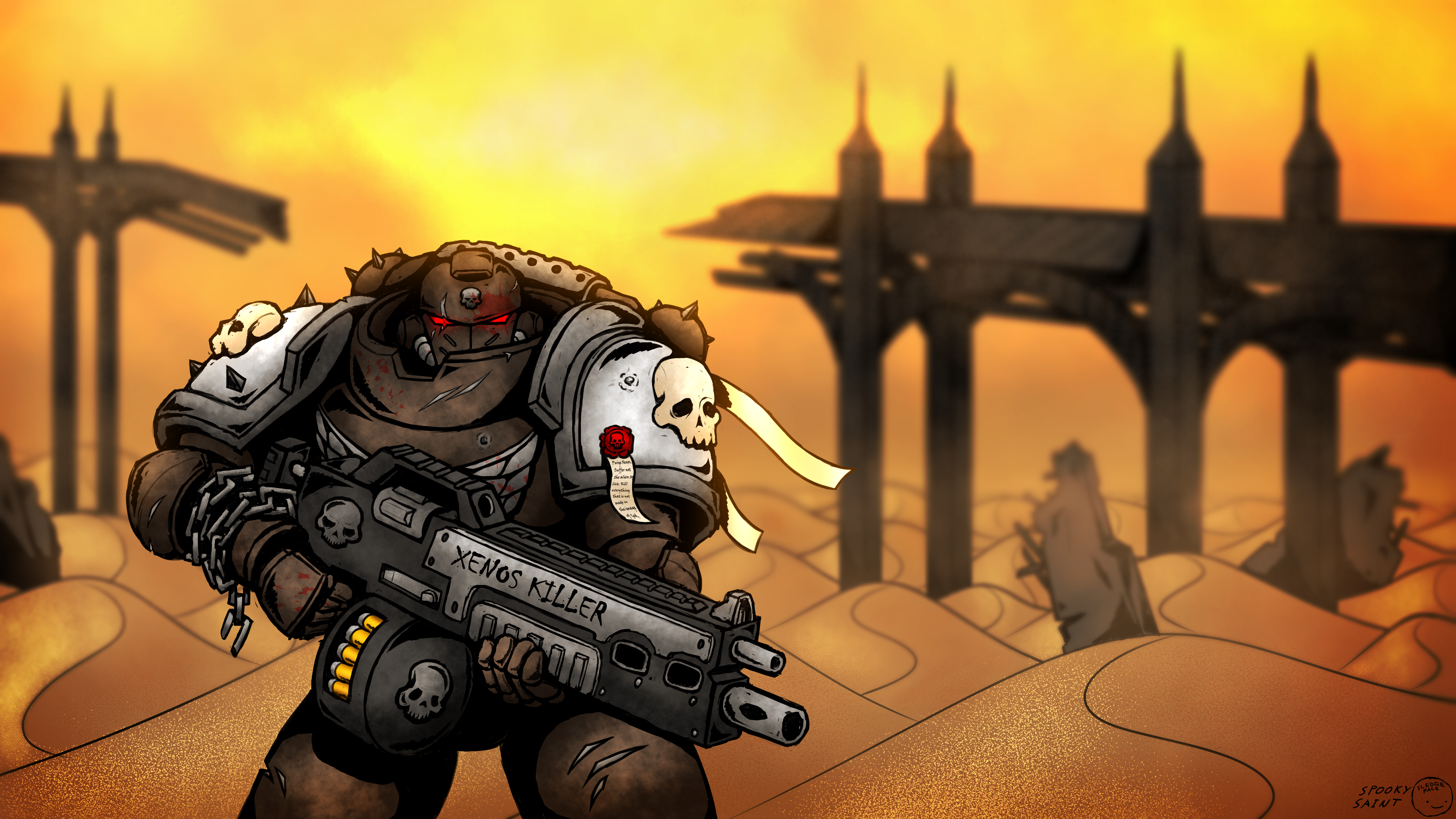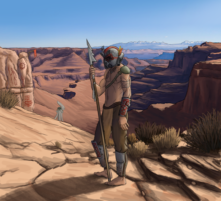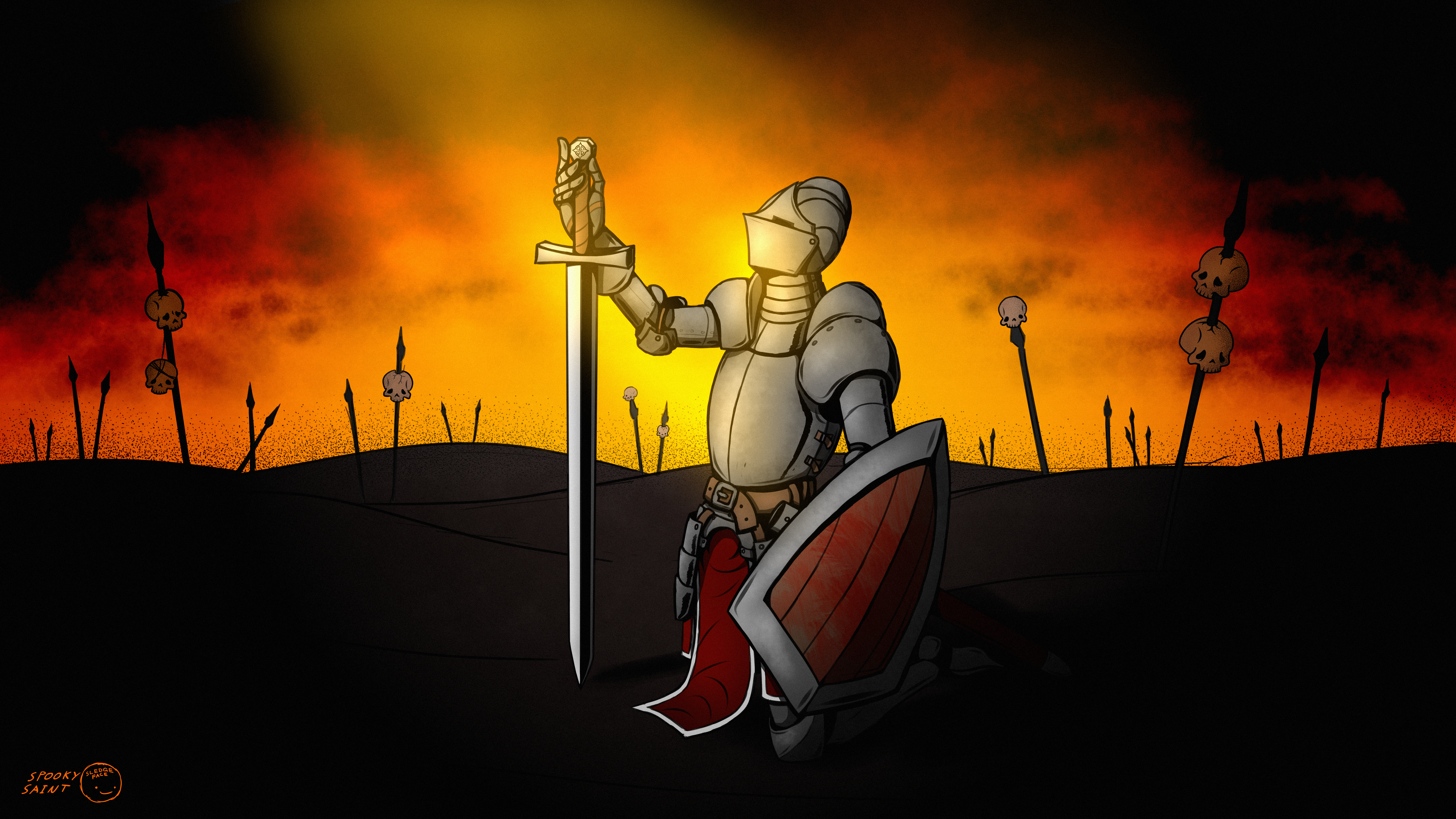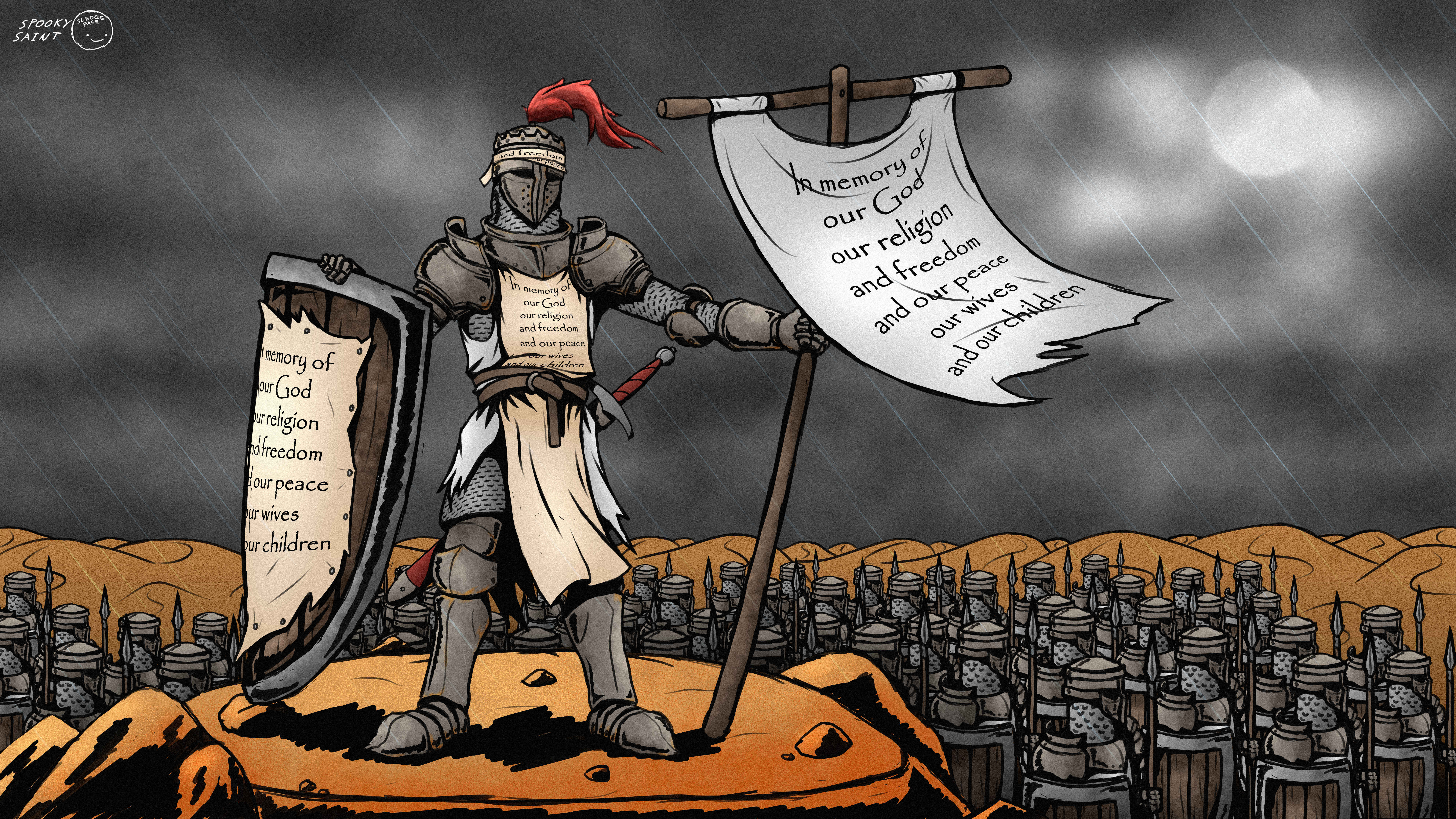 A wandering warrior, whilst traversing the desolate wasteland, discovers something of value.When drawing this, I listened to this playlist: open.spotify.com/playlist/04ZH…