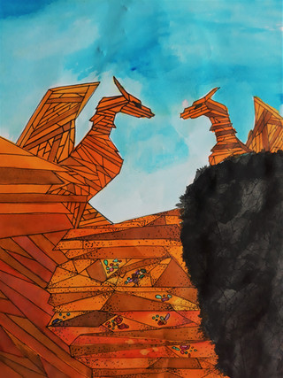 #dragon #geometric #marker #orange #paint #sharpie #geometricart