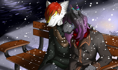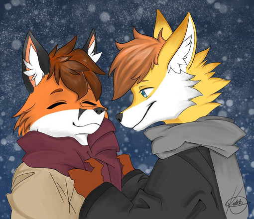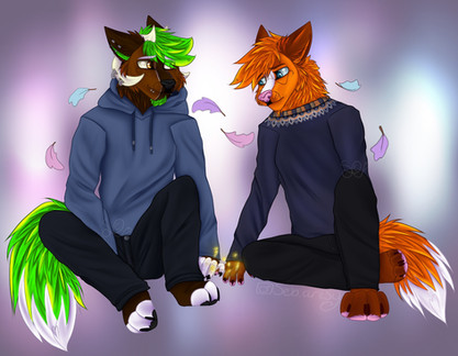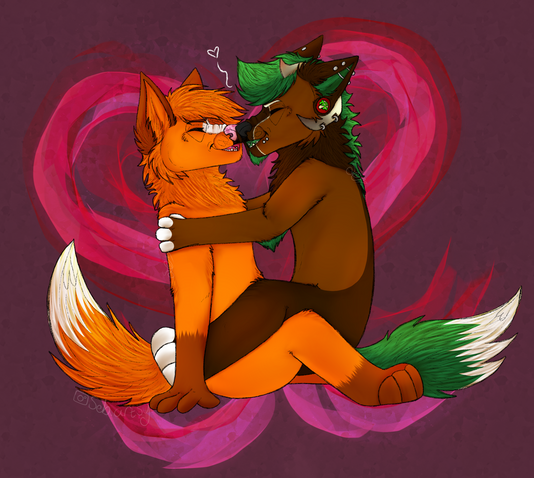 Cj got tired of Ely being too chicken shit to smooch him, so he has to take the first move 😤 After that, Ely wasn’t so scared anymore heheh so lots more smooching ahead!! 👀LOVE THEM SO MUCH!!! This piece is so pretty I love it… ;; It’s a little collab between me and my boo
