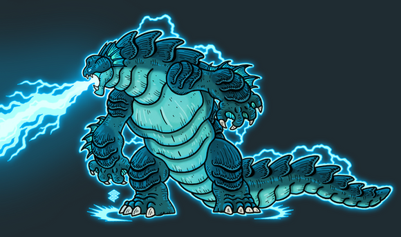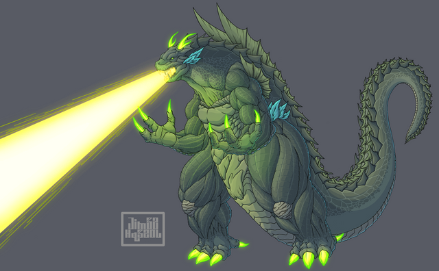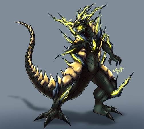 DAMN, Β she looks EPIC! You really did an extremely awesome job drawing her! I love how you drew the anatomy, muscles, and how the colors came out too! I really like that green electricity effect too! She sure looks like one powerful kaiju! Really epic job!