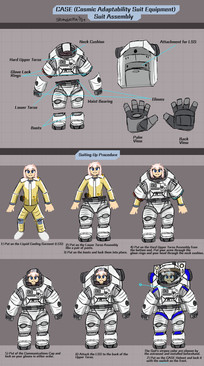 A handy look at the components of the CASE spacesuit featuring Maxine Taylor wearing the suit.