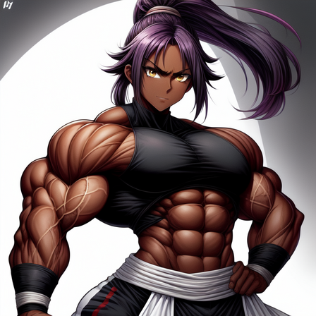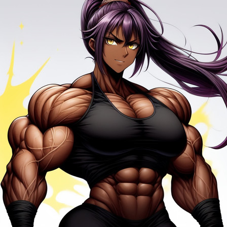 #abs #ai #biceps #fanart #muscle #musclegirl #pecs #bleach #yoruichibleach