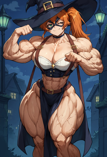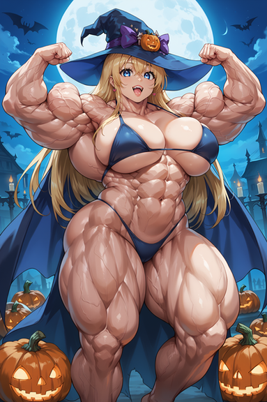 #fanart #halloween #muscle #musclegirl #abs #ai #biceps #pecs #sena_riko
