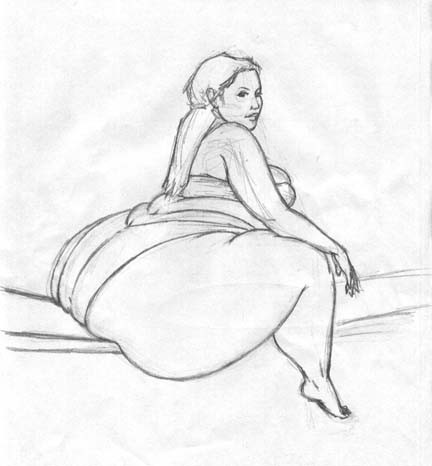 This is a pretty simple pic, but the shading makes it really deep. You draw the best legs ever! Her legs taper down to her feet in a way that is just dead sexy. And who could forget those buns...absolutely beautiful in form and size! Definitly one of the best ass-specific drawings I've ever seen. Excellent!