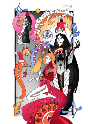 Ink and watercolors.The Dragon Age characters also celebrate halloween.