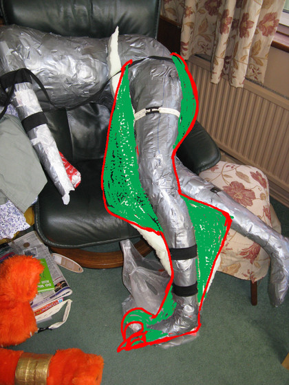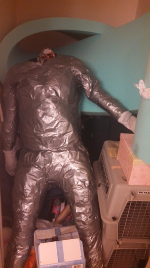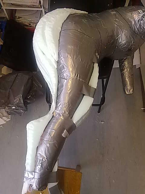 After the padding was done, we duct taped the suit for the pattern.Related content