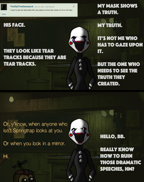 Hey Springtrap! In my pizzeria is another one of yours and guess what?? He got a female cousin named Ivie! What would you do if you got her as a cousin yourself? :3