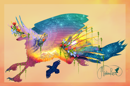 The singing bowl emits an eerie, vibrating tone that reaches out into the vast openness of the bare mountain side. The darkness of the night swallows the noise before it can get too far. The three of you watch the stars before noticing that six particular stars, nearly right above you, are flickering and moving - they're getting bigger. Without a sound, a large, dark firebird alights in front of you, her wings silencing the singing bowl.