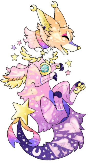She has stars on her face and ears and clouds on her chest and a gorgeous gradient on her BUSH TAIL!