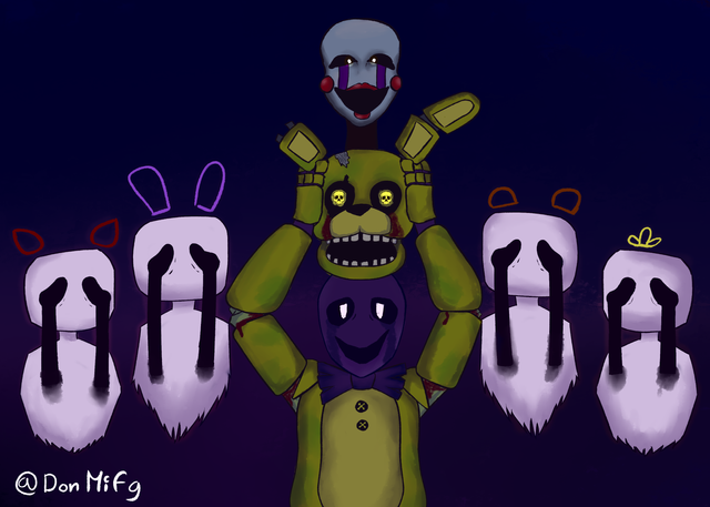 So yeah decided to doodle this to practice out the ink pens from my art class, used the older springaling pages as reference pics since those actually had a few pretty good panels where Springtrap's entire body was shown.